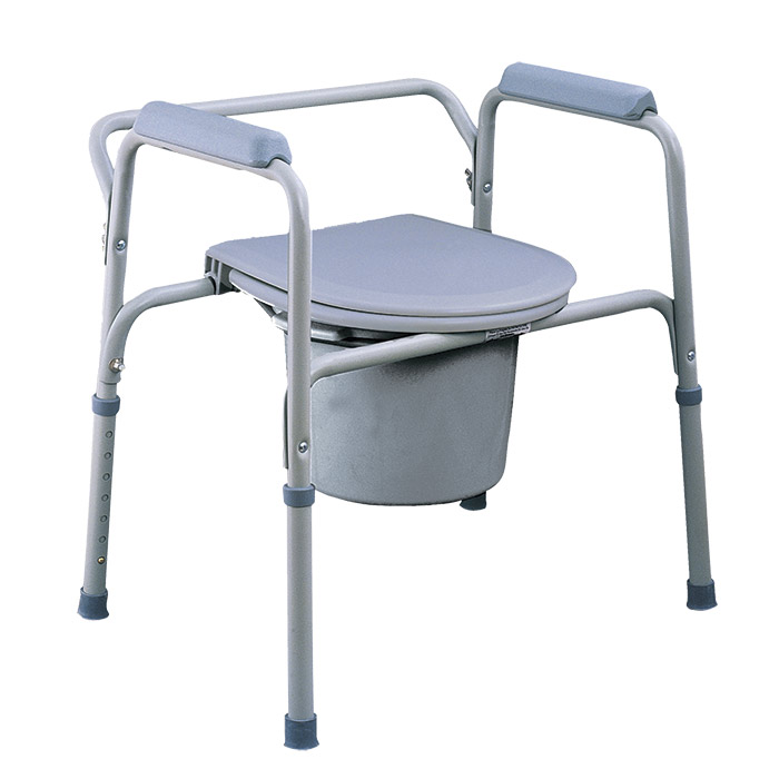 - конструкция кресла-туалета позволяет устанавливать его сверху над унитазом (в этом случае ведро с крышкой убираются)