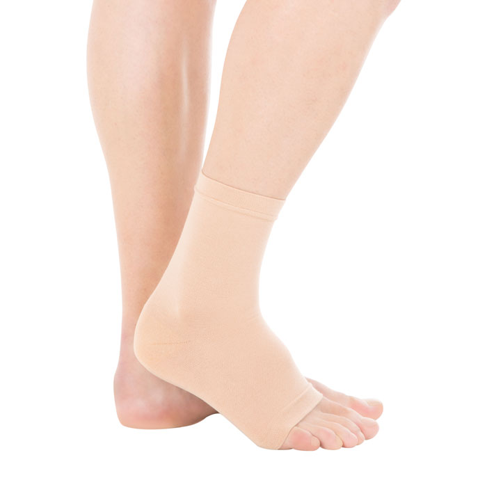 - взять бандаж за верхний край и натянуть его через стопу на голеностопный сустав так, чтобы пятка вошла в предназначенное для нее углубление