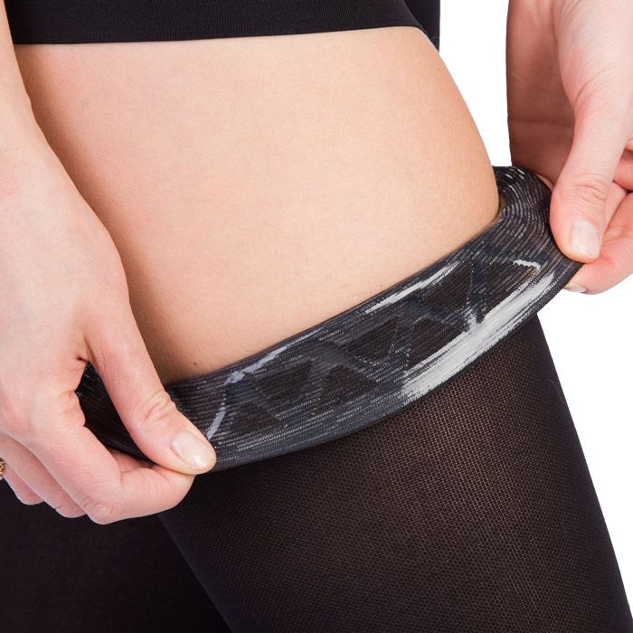 - равномерно расправьте изделие от лодыжки вверх по ноге, не перекручивайте и не тяните с усилием за верхний край изделия