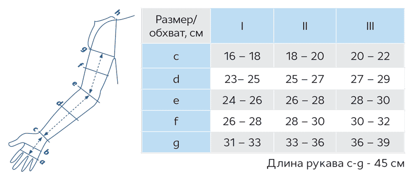 - измерения для подбора компрессионного рукава проводят на выпрямленной руке утром, до образования отека