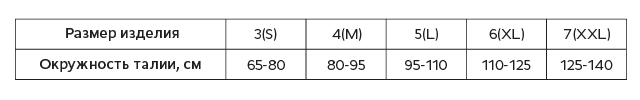 - Размер бандажа выбирается согласно таблице размеров изделий по окружности талии.