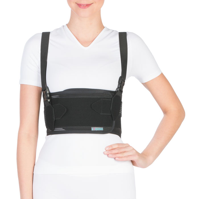 - имеет нерастяжимую переднюю панель для надежной фиксации переднебоковых частей грудной клетки и эластичную заднюю часть для сохранения мышечного тонуса