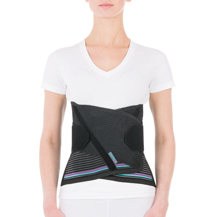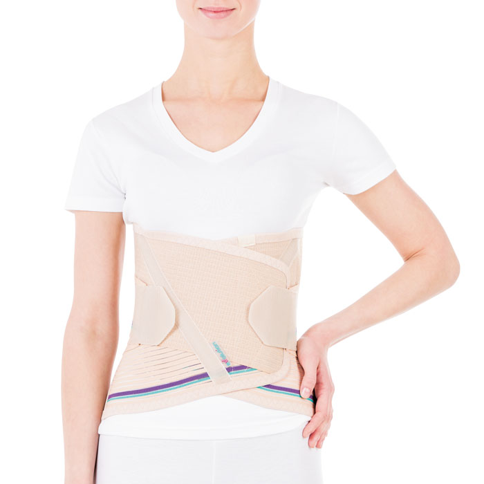 Передние панели корсета застегивают на талии, желательно в положении лежа на спине. Степень воздействия на мышечный каркас поясничного отдела позвоночника может быть отрегулирована с помощью застежек «Велкро» и дополнительным натяжением съемной стяжки в области талии. Съемная дополнительная стяжка закрепляется на талии с помощью вертикальной застежки «Велкро» на задней поверхности корсета. В зависимости от показаний стяжку можно смещать ниже или выше по отношению к центру корсета. Натяжение дополнительной стяжки лучше регулировать в положении стоя или сидя.