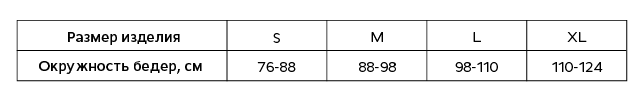 - размер бандажа подбирается согласно таблице размеров изделий по окружности бедер