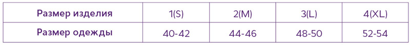 Для подбора размера следует соотнести размер одежды пользователя с таблицей размеров изделия.