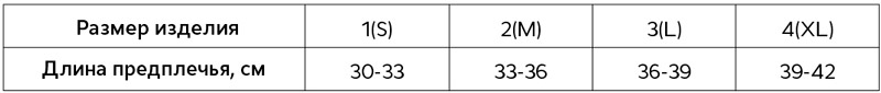 - размер бандажа выбирается согласно таблице подбора изделий (длина предплечья)