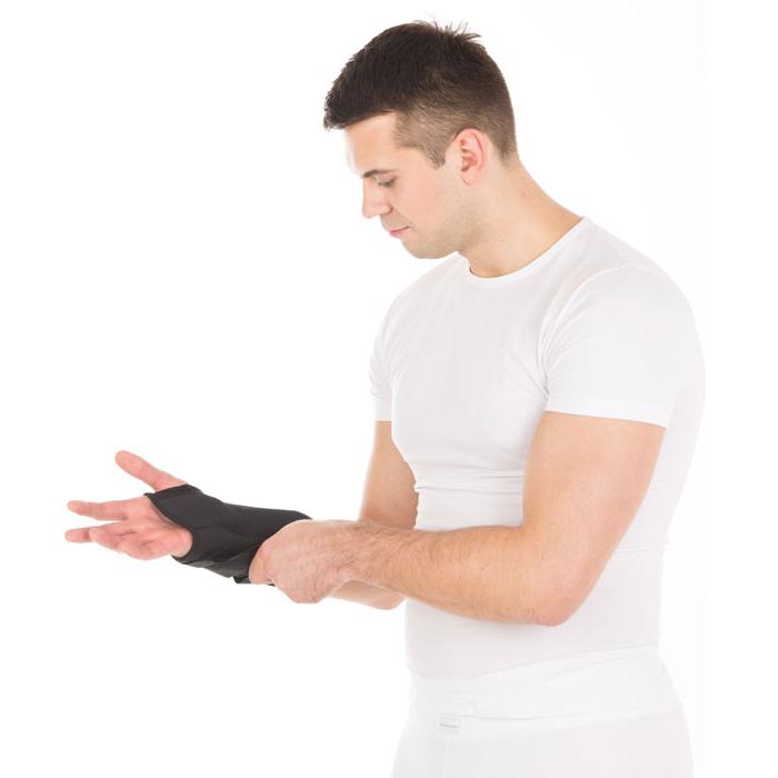 - зафиксировать бандаж на кисти и предплечье с помощью застежек «Велкро»