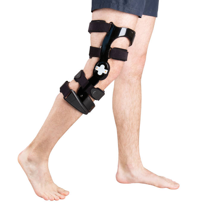 - расстегните ремни, расположите ортез так, чтобы шарниры располагались в проекции надколенника
