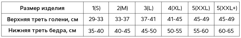 - Размер коленного бандажа выбирается согласно таблице подбора изделий по верхней трети голени и нижней трети бедра
