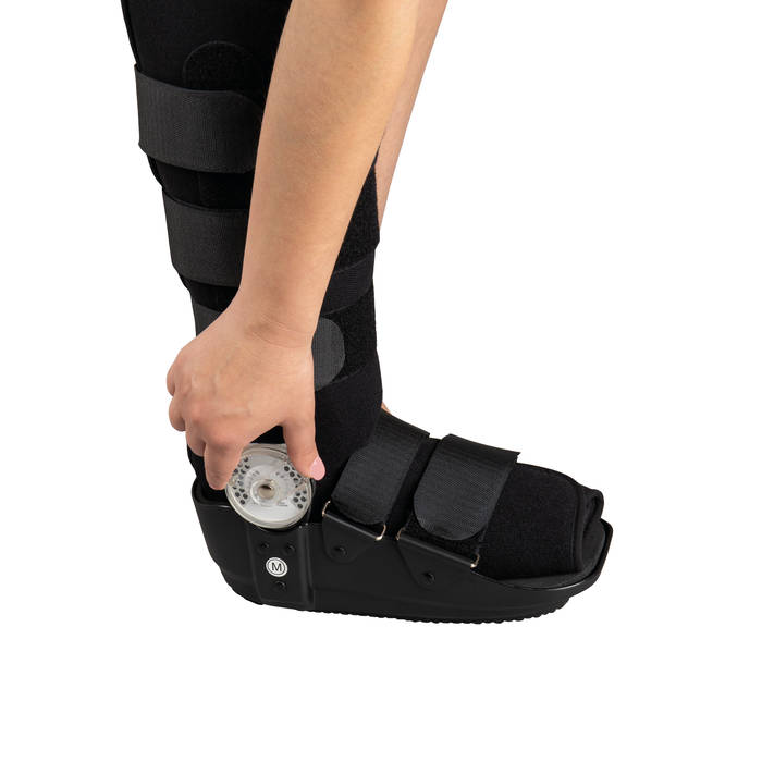 - регулировка угла подошвенного и тыльного сгибания стопы 0°- 45°, с шагом в 15°, при необходимости можно полностью иммобилизировать голеностопный сустав