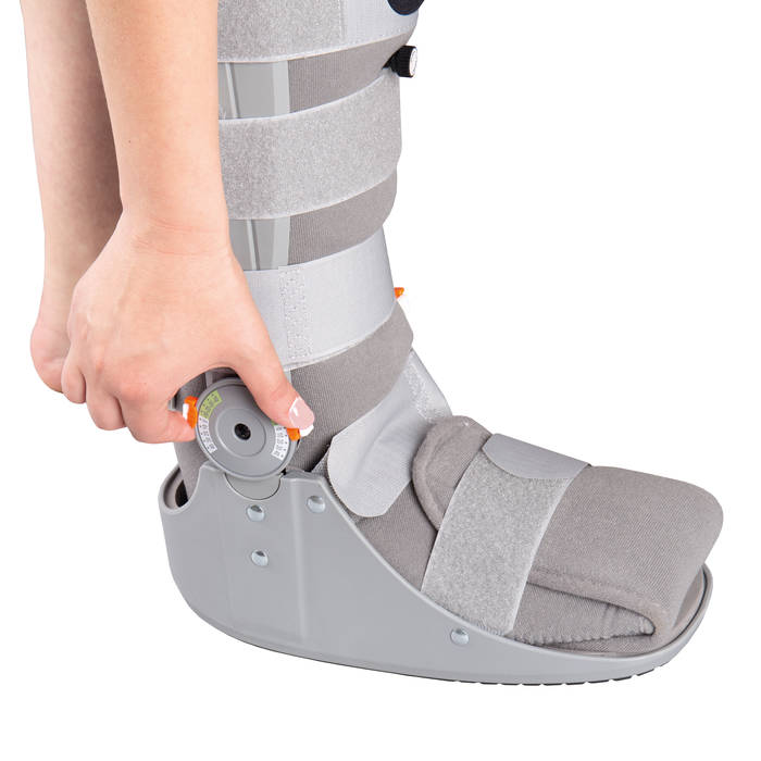 - пневмокамера с механизмом нагнетания/спуска воздуха регулирует внутренний объем ортеза и степень компрессии на область голеностопного сустава