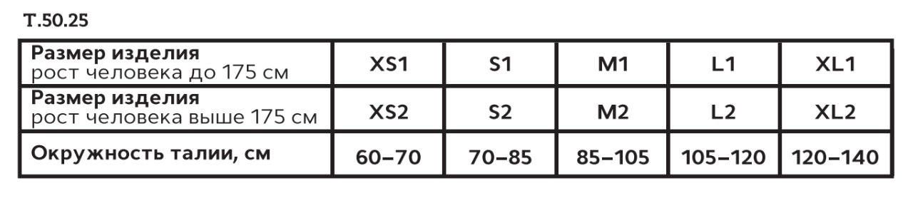 Если обхват талии пользователя находится на пересечении двух размеров в размерной таблице, рекомендуем выбрать больший размер изделия.