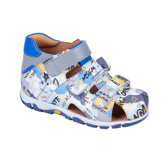 - износостойкая подошва с каблуком Томаса, протектором для амортизации и небольшим пяточным перекатом и пяточным амортизатором, носочная часть подошвы соответствует контуру пальцев стопы детей в этом возрасте